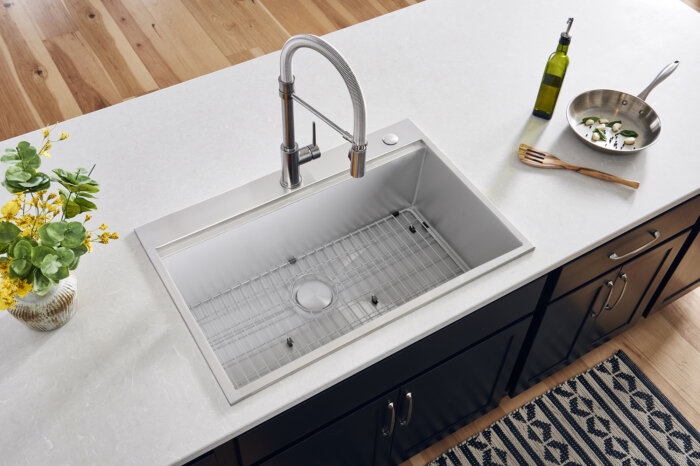 The Siena collection combines a solid topmount rim with a functional workstation so you can do all your prep work right on top of your sink.