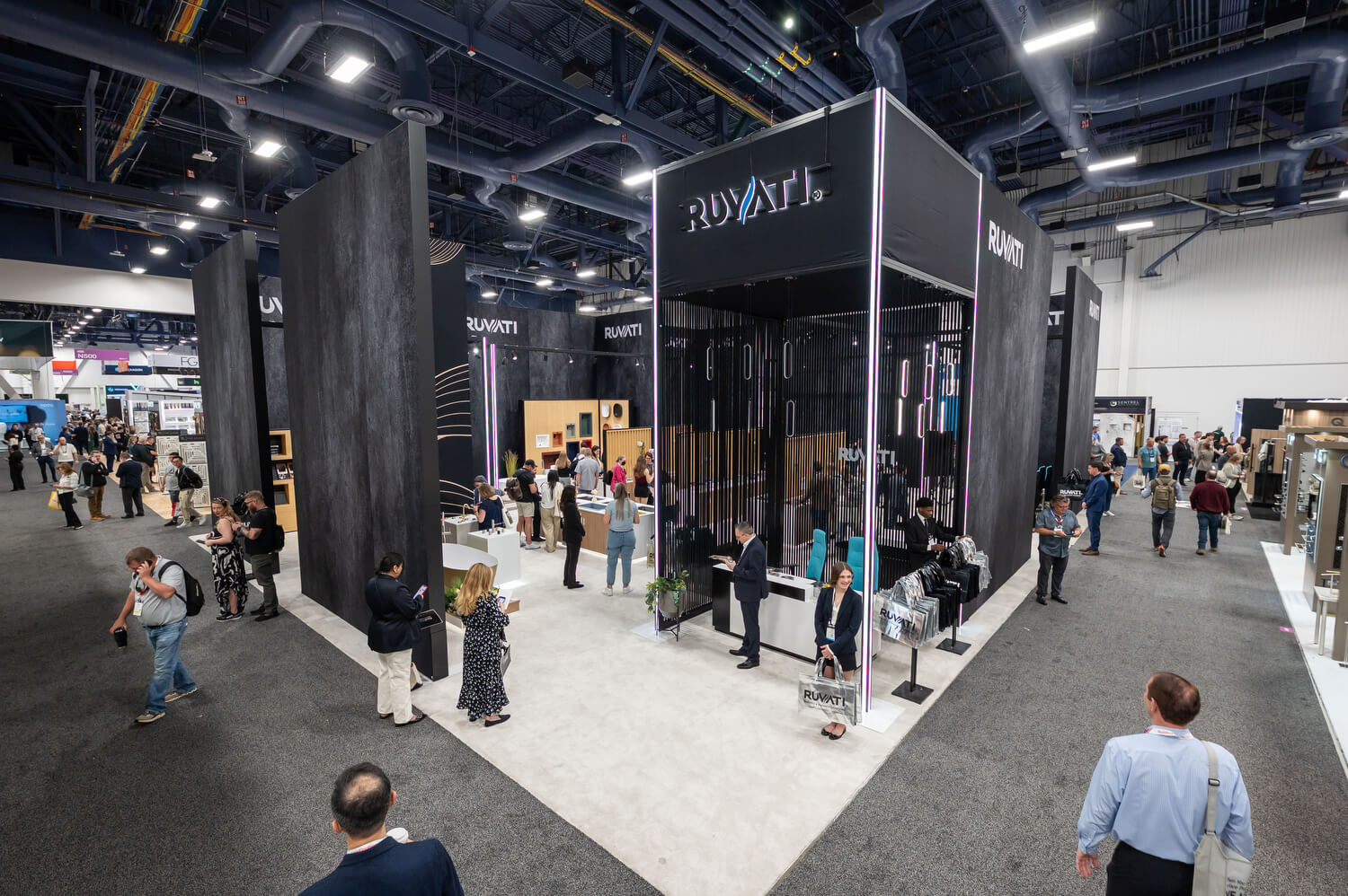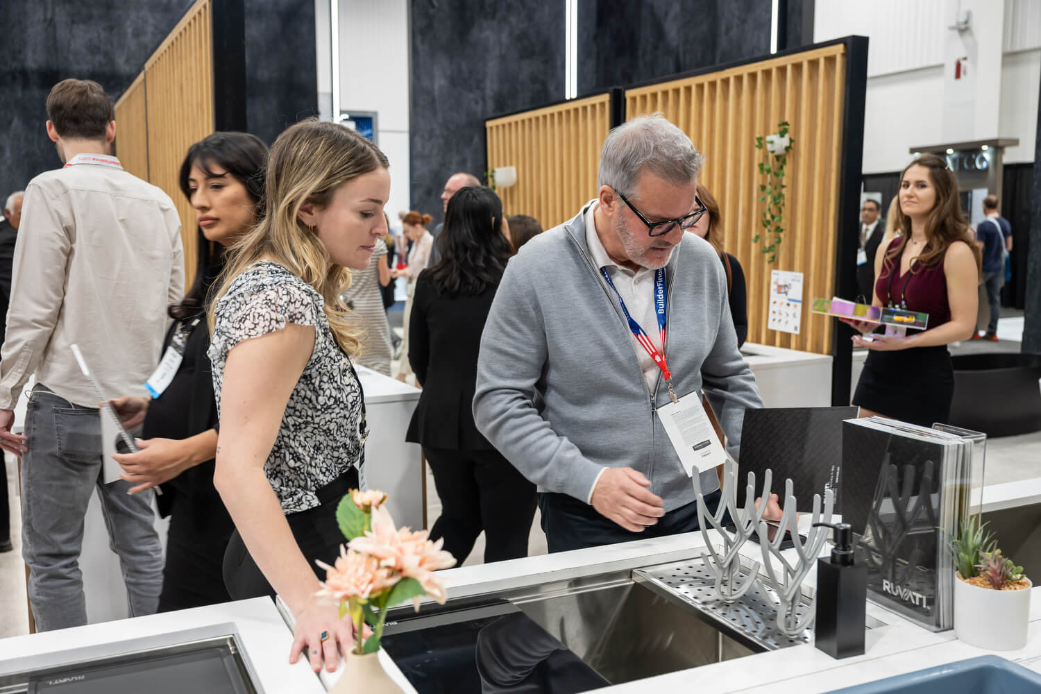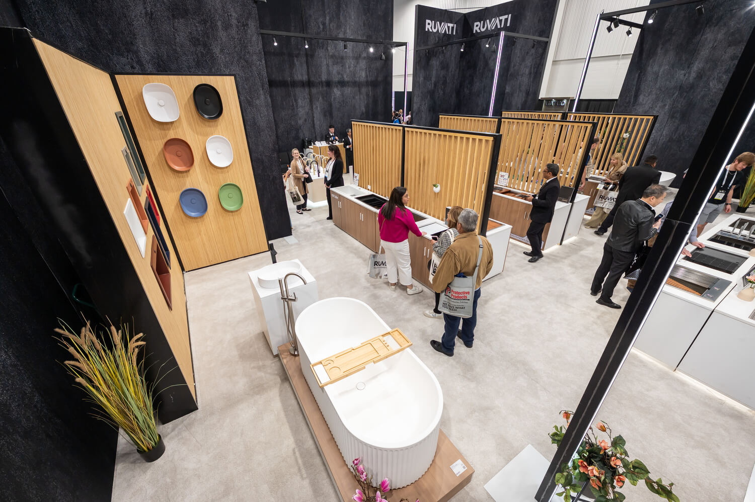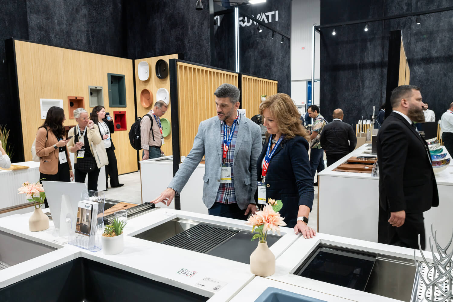 Our booth highlighted the innovation and versatility that define Ruvati. Our workstation sinks, already beloved by homeowners and professionals, remained a centerpiece, demonstrating the seamless blend of form and function that has become our hallmark. This year, we continued to expand that vision with new solutions beyond the kitchen, including laundry sinks, bar sinks, and a wider range of specialty sinks designed to bring Ruvati quality and practicality to every corner of the home. Our epiStone bathtubs and bathroom sinks also drew significant attention, with attendees drawn to their elegant lines, durable construction, and elevated design.